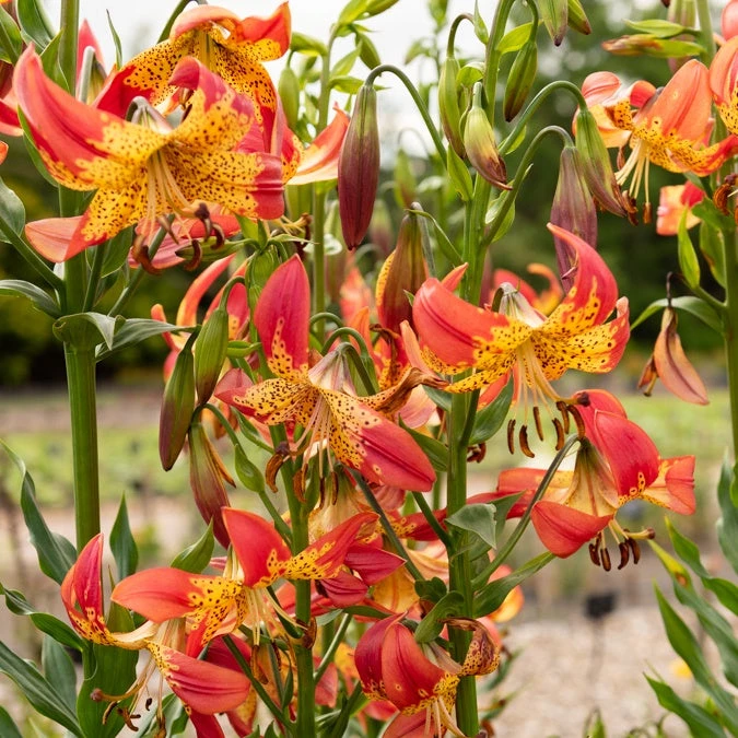Selon les études menées par les pépiniéristes Willemse, le Lis Fusion est une variété de lis exceptionnelle qui a été créée grâce à un croisement entre un lis longiflorum et un lis pardilinum. Cette plante se caractérise par des tiges robustes qui portent de nombreuses fleurs colorées, avec des pétales délicatement recourbés qui sont rouges au coeur jaune et parsemés de pourpre.